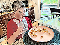 The more he has learned to use his communication device, the more he has been seeing it as an easy way to score this cherished meal.  His therapist was here for his most valiant attempt.