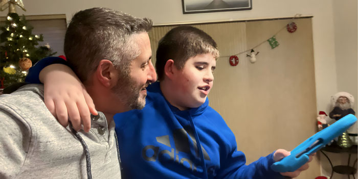 I make annoyed eye contact with him and toss the device to the other side of his bed. He watches it sail away and suddenly, he’s a dressing expert. His pants and shoes are on in Guinness World Record time. He gives a short jump and victory clap before doing a four-foot dash to the pillow side of his bed, where his iPad is waiting. Abby is unpaused before the final shoelace bow falls to the ground.