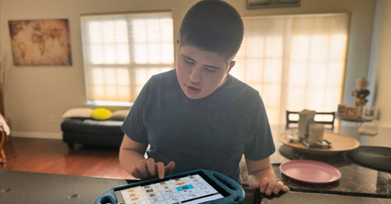 From there, it’s been non-stop color matching. We moved to the basement, where I’d hold up an Uno card, change the LED lights to that color, and ask him to identify it on his communication tablet.