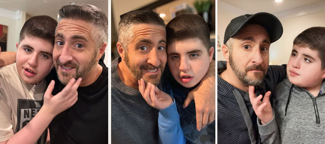 This pose is a longstanding one in our home. There’s no setup or request. I simply stand close to him, hold out my phone, and he settles in. Before I know it, his hand is under my face as if to say, “Hey world. This is my dad’s head.”