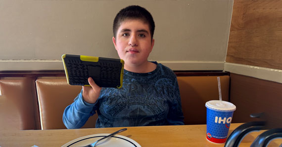 What makes this post so bizarre is that today, Lucas, at age 14, has still never said his first word. He doesn’t call me “Dad” or even say “hi”. His communication is limited to his winning smile, pantomime hand-gestures, and robotic-voiced communication device. Da-da? Nah-nah.