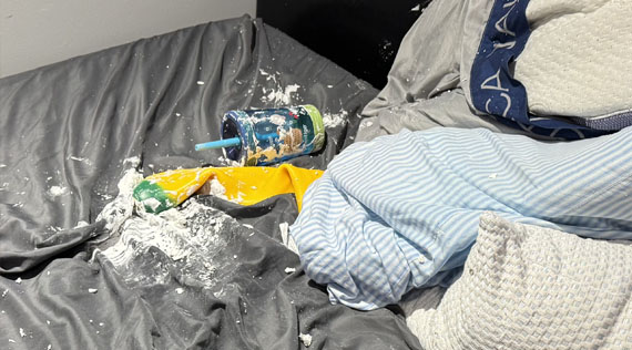 Lucas had taken to sleeping with it in his bed. At some point, he either squeezed it too tight or rolled over on it, and the thing popped… all over everything.