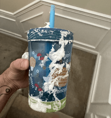 Yeah. My brain tried to adjust to the sight. Why was there white all over my son? Oh, and apparently also all over the bed and the blinds. His cup was covered in it.